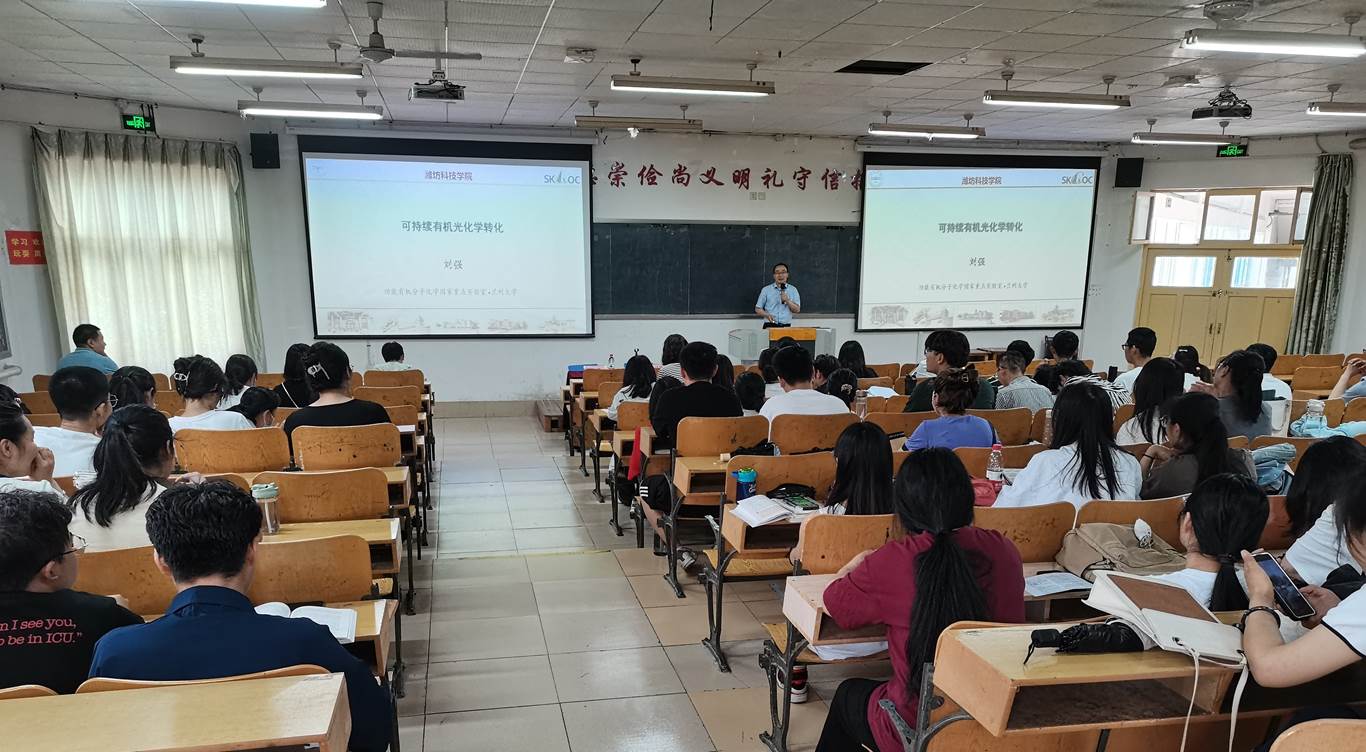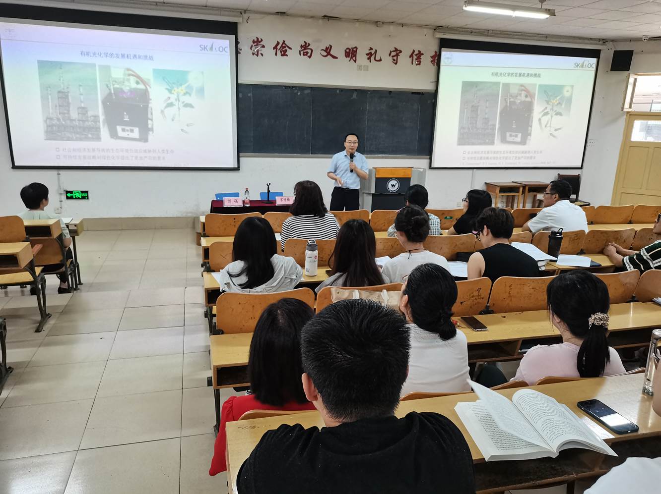 6月19日,球友会邀请兰州大学教授、博士生导师刘强来我校作题为“可持续有机光化学转化”的学术报告会。报告会由球友会院长宋继梅主持,全体专任教师和部分学生代表参加。