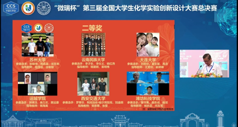 8月24日下午,“微瑞杯”第三届全国大学生化学实验创新设计大赛总决赛在厦门大学闭幕。受近期疫情影响,总决赛采取线上方式举行。作为当前国内规模最大的高校化学类学科竞赛,本次大赛共吸引国内410所高校、908支队伍报名参赛。经过东北、西北、华北、华东、华中、西南、华南七大赛区激烈角逐,最终90支全国精英队伍角逐决赛,我校球友会杨永启和闫友军老师指导的学生团队荣获全国二等奖的好成绩。本次大赛我校突破多个第一次,第一次进入华北赛区决赛,第一次荣获华北赛区一等奖,第一次荣获全国决赛二等奖,是山东省晋级决赛的六所高校之一,是同级别院校唯一晋级决赛的队伍。