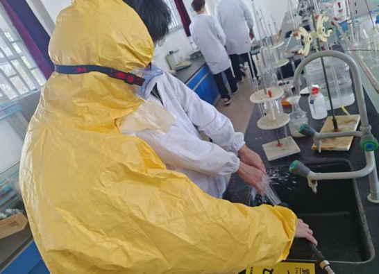 在有毒液体接触皮肤事故演练环节,工作人员模拟不慎打翻有毒液体容器,后勤组迅速响应,穿戴专业防化装备,有条不紊对泄漏液体进行清理。现场同学依据培训所学内容精准喷洒中和剂,在黄金时间内完成应急处置,将理论知识转化为守护生命的实际行动,直观领略到团队协作与专业急救的意义。
