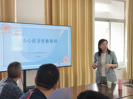 刘秀艳对《全面加强和改进新时代学生心理健康工作专项行动计划》中的相关内容进行了解读,详细介绍了我校心理健康四级网络体系--各宿舍、各班级、各二级学院和学院心理健康教育中心。她结合具体案例深入阐述了谈心谈话的基本原则和谈心谈话的具体程序,帮助辅导员更好地掌握心理谈话技巧,深入了解学生心理需求,为学生提供更全面、更专业的心理健康服务。培训最后设置了答疑讨论环节,刘秀艳结合辅导员提出的具体案例进行了分析,发现学生谈心谈话中存在的问题,提供了有效的解决策略。