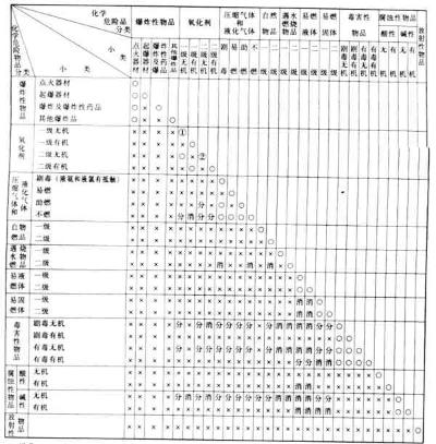 3(3(2 按不同类别、性质、危险程度、灭火方法等分区分类储藏,性质相抵的禁止同库储藏。附录A(标准的附录)给出了化学危险物品混存性能互抵表。
