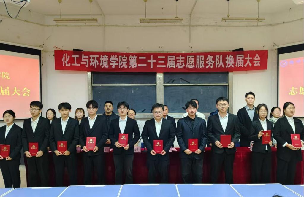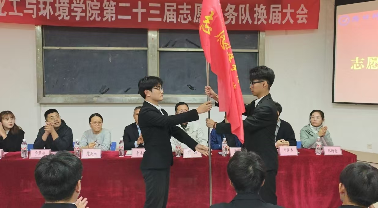 尹波书记宣读选举产生的第二十三届志愿服务队学生骨干成员名单,并进行志愿服务队换届授旗仪式。