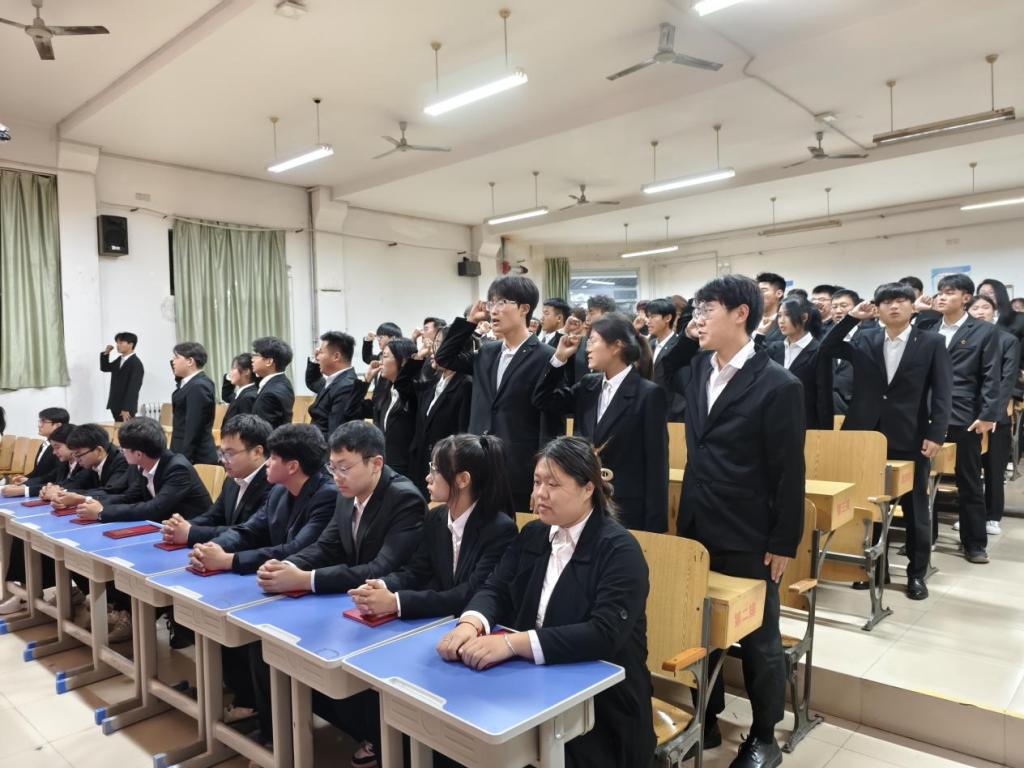 第二十二届志愿服务队学生骨干代表江玉乐与第二十三届志愿服务队学生骨干代表宋振华先后上台发言。他们回顾了过去一年志愿服务队工作的点点滴滴,分享了在工作中的收获与成长,表达了对未来工作的憧憬与信心,承诺将以饱满的热情和高度的责任感,为同学们服务,为学院的发展贡献自己的力量。之后,第二十三届志愿服务队全体学生骨干庄严宣誓。
