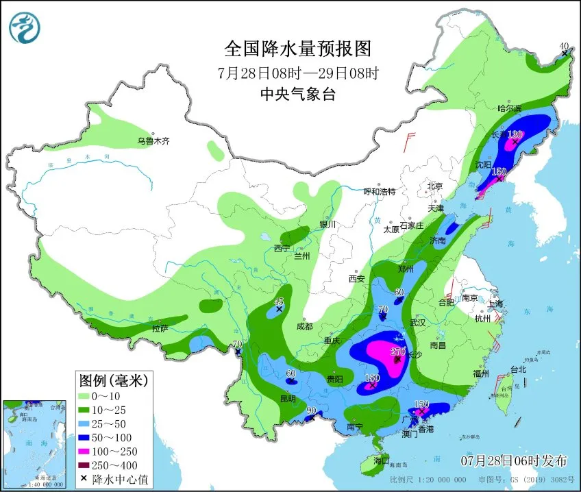 山东省气象台于7月28日06时继续发布台风蓝色和暴雨黄色预警:28日05时,“格美”中心位于湖北省咸宁市境内,中心附近最大风力6级(12米/秒,热带低压级),中心最低气压999百帕。预计未来“格美”将以每小时10~15公里的速度向偏西方向移动,强度进一步减弱。受其影响,26日下午到27日夜间,枣庄、临沂、日照、潍坊、济南东部、淄博南部、青岛北部和烟台出现了大到暴雨局部大暴雨。预计,28日白天到夜间,菏泽、济宁、济南、泰安、淄博、潍坊北部、烟台北部和鲁西北地区有中到大雨局部暴雨并伴有雷电,其他地区局部有雷雨或阵雨。